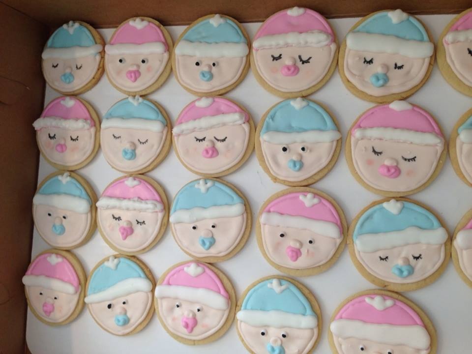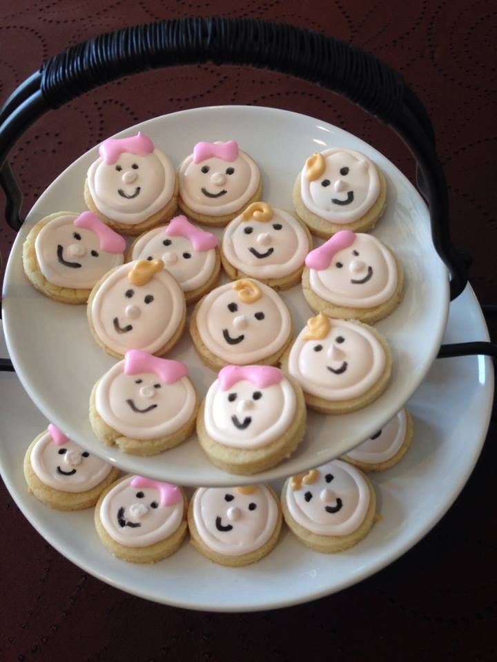 I consider myself to be pretty crafty, but in no way could I have made these cookies! A parent from school made these for our reveal. They were adorable and tasted amazing. She used the leftover dough to make mini cookies (about quarter-sized) that looked like baby faces. These were a BIG hit at the party!