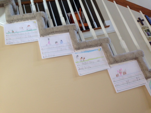 I teach Kindergarten and my students are VERY excited about the babies. The Wednesday before our reveal, I had them make their predictions of what they thought the babies would be. We used them as decorations for the party (and as something fun for our guests to read!) Surprisingly, 11 of my students thought we would have one of each! 5 chose girls and 4 chose boys.