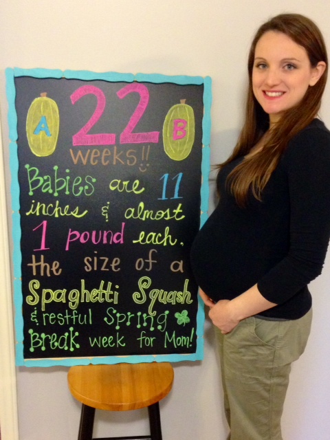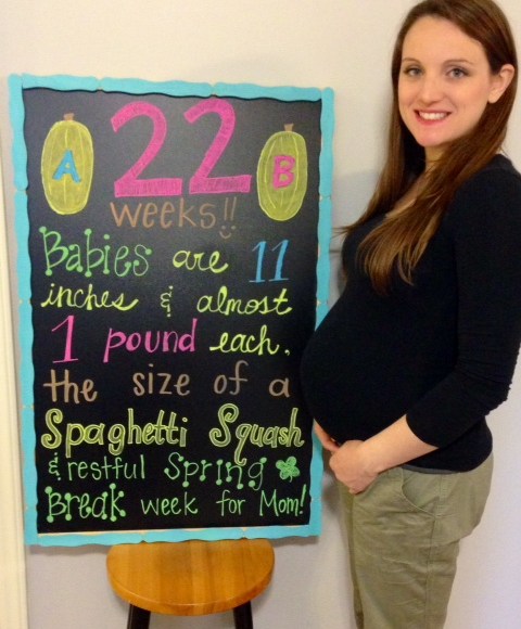 As I may have already mentioned, I am a worrier. Right now, I worry that the babies will come too early. Several twin moms on the message board have needed cerclages to try to keep the babies in or are already on bed rest. Tommy’s cousin is in the hospital right now at almost 24 weeks in that situation– fighting to keep her baby inside and praying her cerclage will hold. A mom on the July board delivered her baby at 23 weeks and it did not survive. The pictures of her tiny baby girl nearly broke my heart. I told Tommy last night that they feel “so big” because my belly seems huge and they kick/move all the time, but I know they are still too little to survive outside the womb. The thought of making it this far and something horrible happening to them truly terrifies me. I know that God is in control and that His will will be done. I continue to pray that He will help my babies thrive inside my womb and that He will give me two healthy babies when it’s time for them to enter the world.