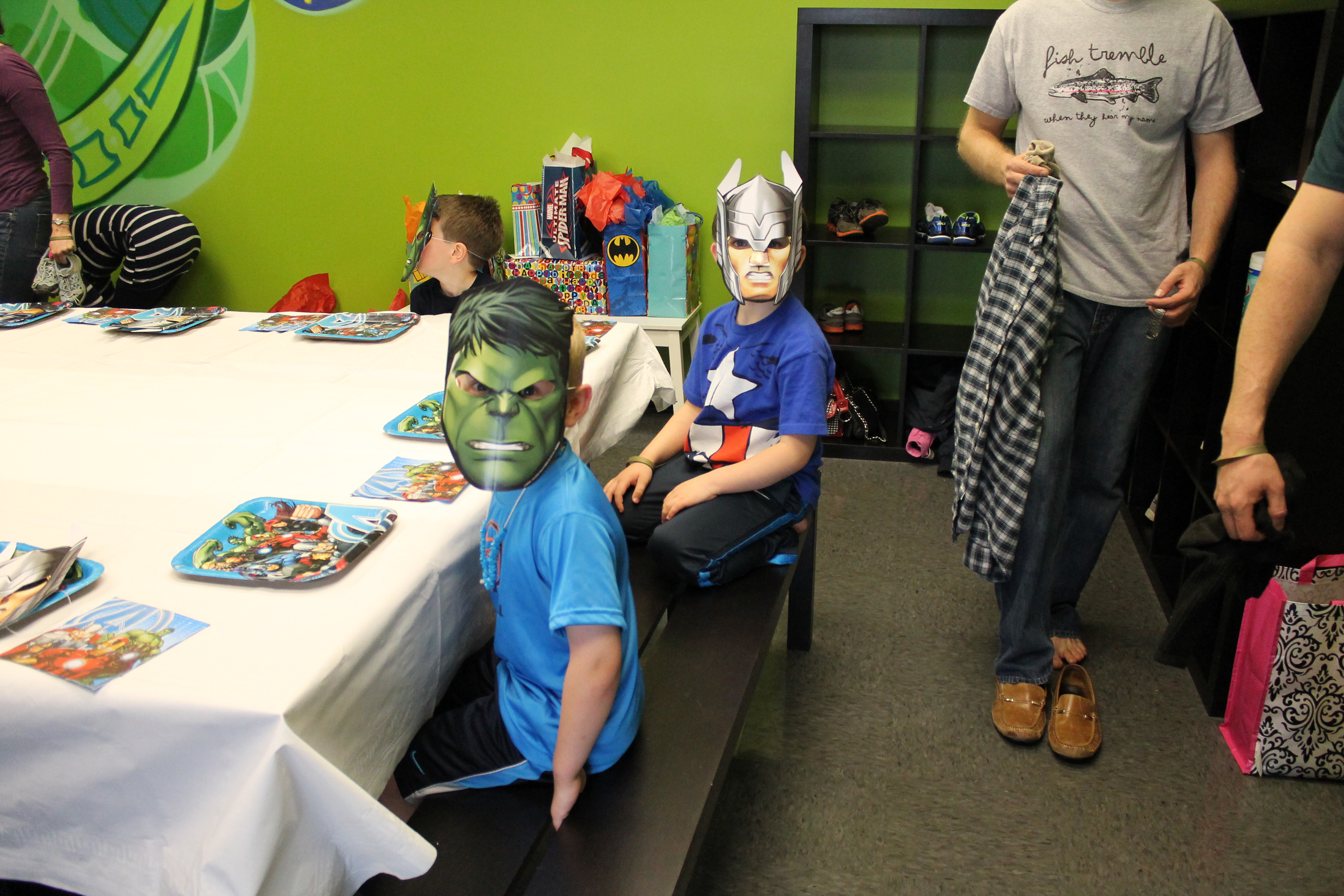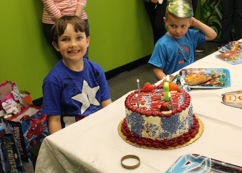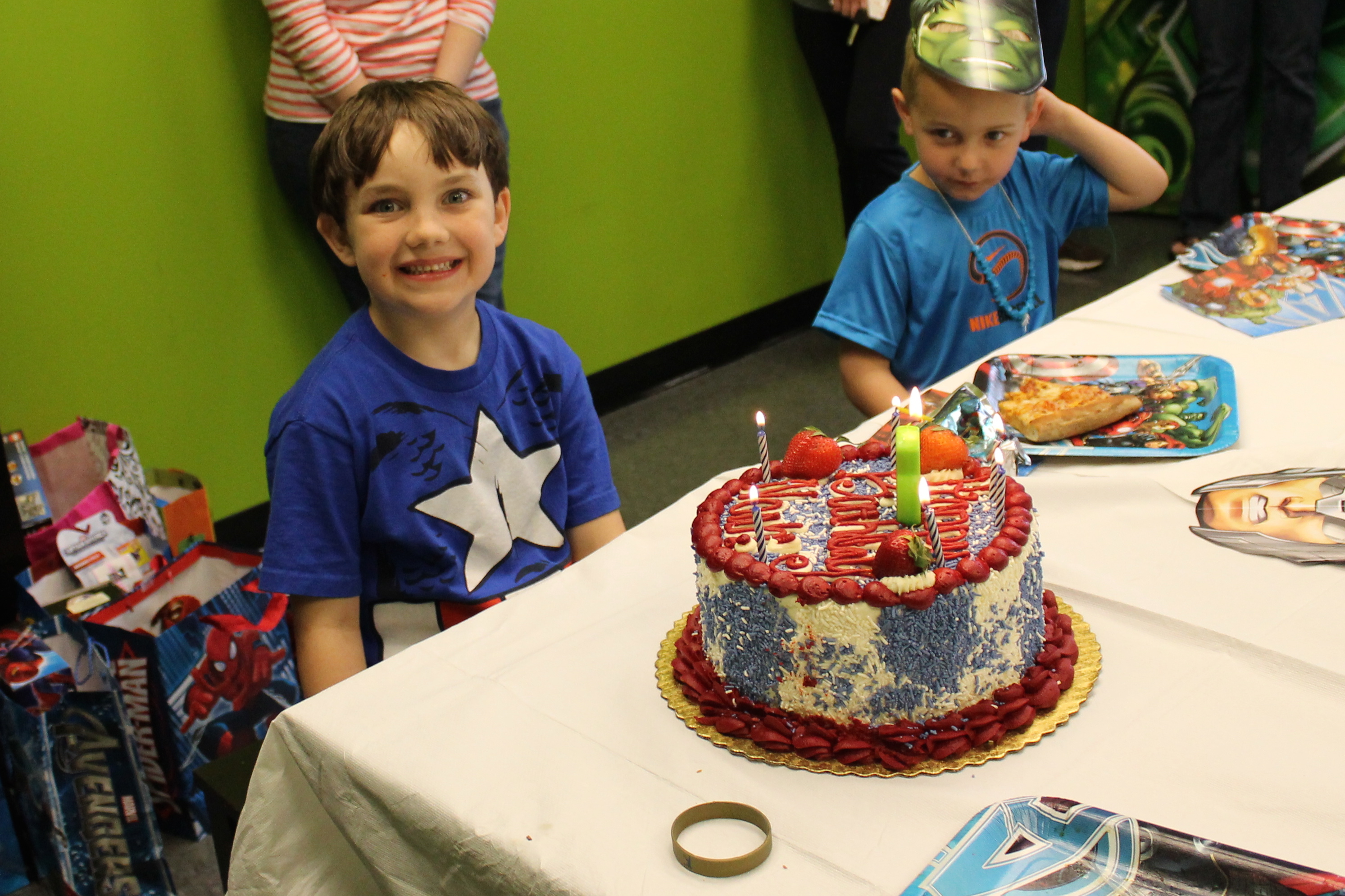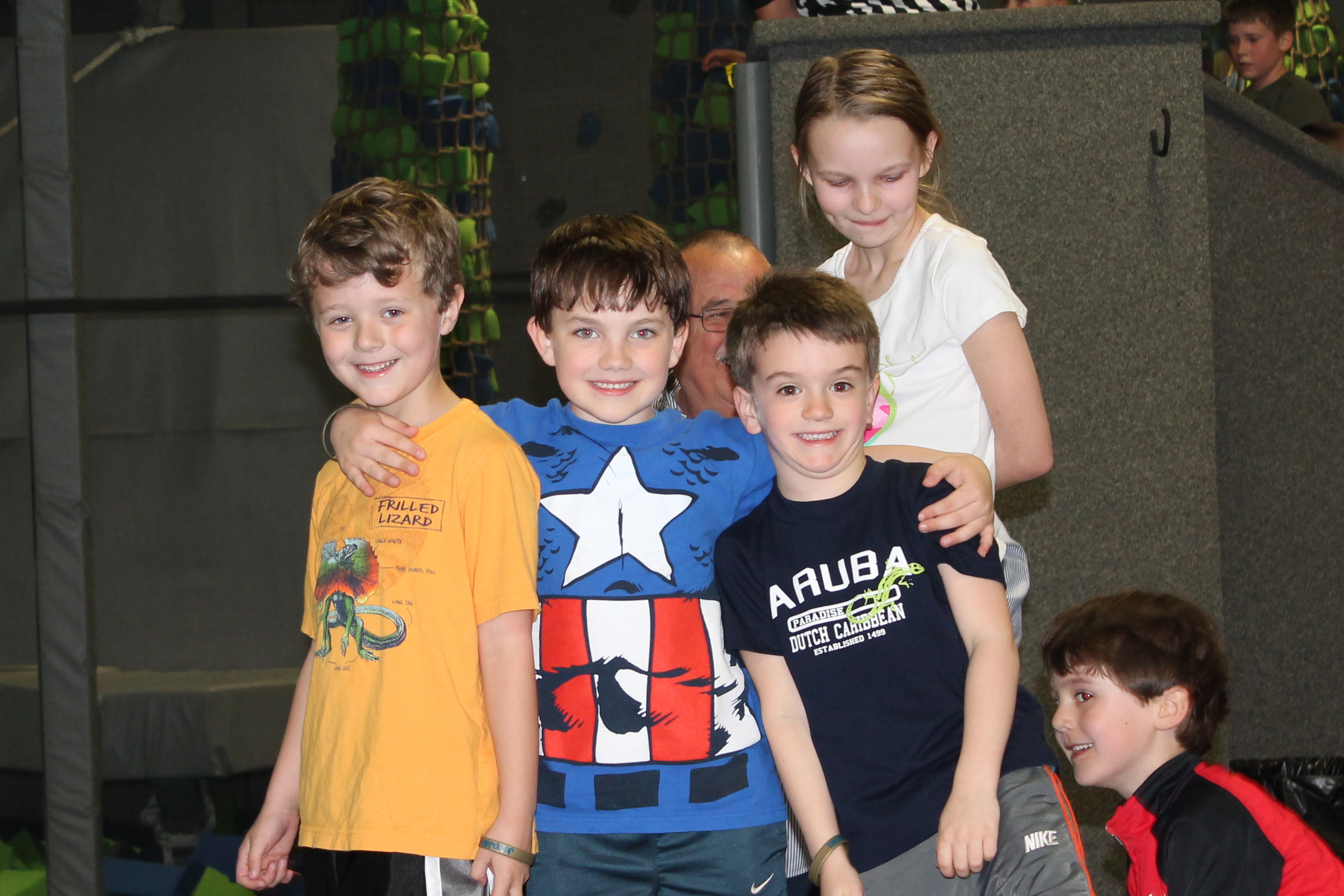 We’ve done parties at gymnastics places, inflatable fun houses and parks, but this year Noah was adamant that it HAD to be at JumpJam, a new indoor trampoline park in our town. I’m not sure who had a better time- Noah or his dad 🙂 Noah and his friends from school played dodgeball, walked the tight rope, did flips into the foam pits and much more! Tommy and my brother-in-law raced through the Ninja Warrior-style obstacle course and both walked away with bruises on their arms! Of course, that didn’t stop them from waiting in line with the kids for a chance to do flips into the foam pit!
