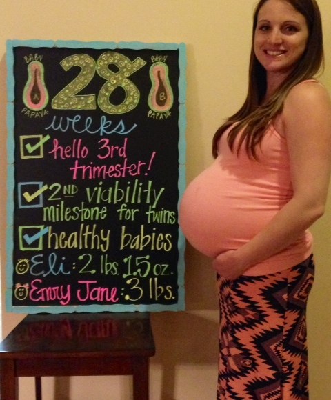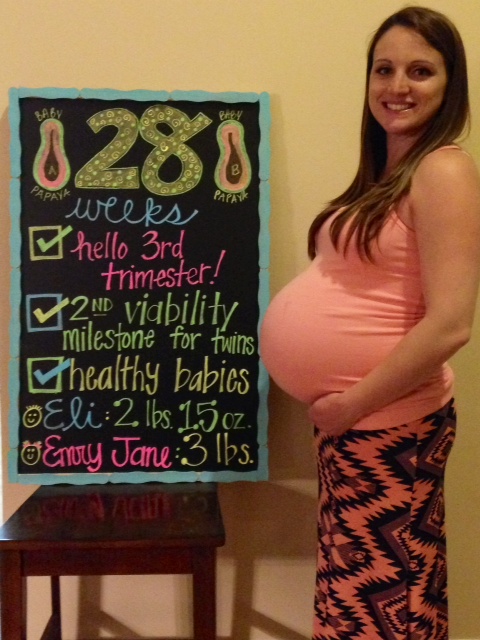 28 weeks is also a big milestone for the twins in terms of viability. They have a 90% chance of survival at this point, if they were to be born now. They would still need months in a NICU and there are still some long-term health risks at this stage. Our next big milestone will be 32-34 weeks when they will have an excellent chance of survival without long-term complications.