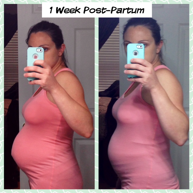 7) Belly Bandit — I bought the Belly Bandit to help with all the extra skin post-babies. I do not enjoy the idea of people asking me “when I am due” when I have already had the twins! It has velcro on the side so that I can tighten it as I need to. Here is a picture of me right before delivery and then a picture of me with and without the band at 1 week post-partum: