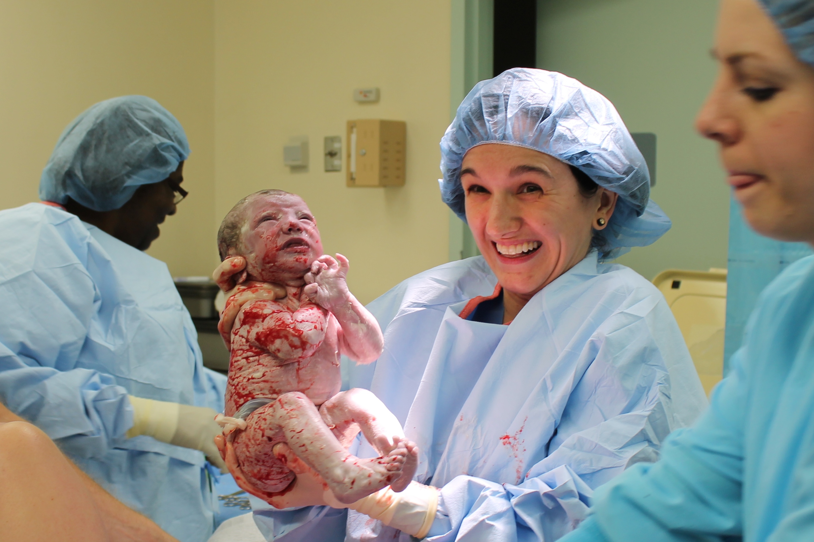 Baby B was not super eager to greet us. She floated around by herself for awhile. She must have enjoyed having the whole womb to herself! Emry Jane (Baby B) made her way into the world at 4:09pm, exactly 10 minutes after her brother.