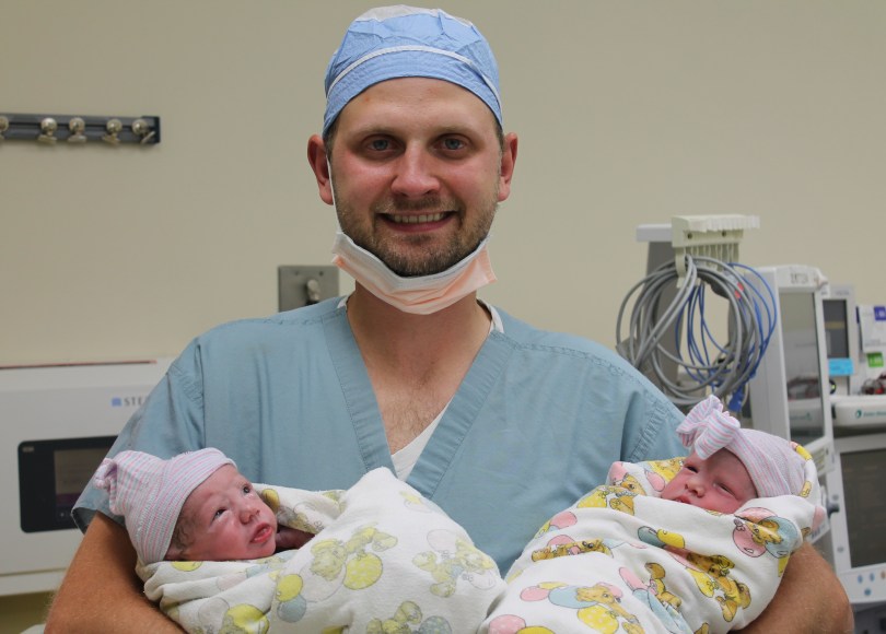 We were all amazed that the babies weighed exactly the same, 5 pounds 14 ounces. They were almost the exact same weight in grams! Emry Jane has a more solid, rounder build and we thought for sure that she would be bigger. Eli was a little longer at 18 3/4 inches to Emry’s 18 inches.