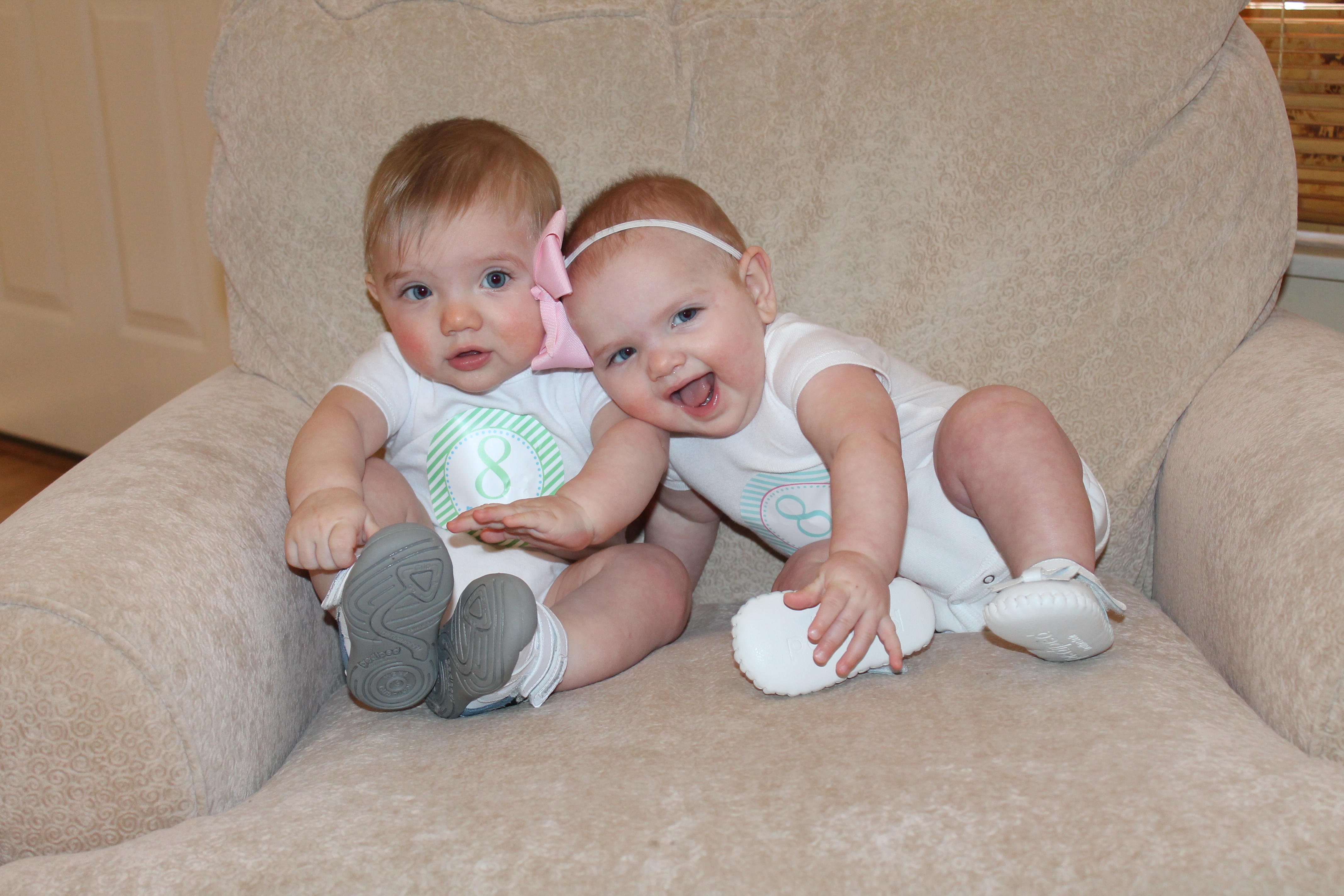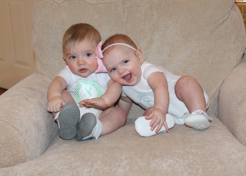 These two are now always on the move!! Getting a picture that isn’t blurry is quite a feat these days! They are so happy but SO BUSY. We are stretching out our feeding schedule even more and go from 7:30pm to 7am between feedings. This is a BIG DEAL for us. They still wake up a few times each night. Sometimes they can find their pacifier on their own and we don’t have to go upstairs; however, I usually have to make at least 2 trips during the night. I am sleeping DOWNSTAIRS and not in the nursery. Another BIG DEAL. We still have the twin bed set up in there for feeding times and rough nights. We are working on transitioning to only 2 naps: 9:30 to 11 and 1:30 to 3. We have taken away the short 30-45 minute rest around 5pm. Emry Jane is still a better napper than Eli.