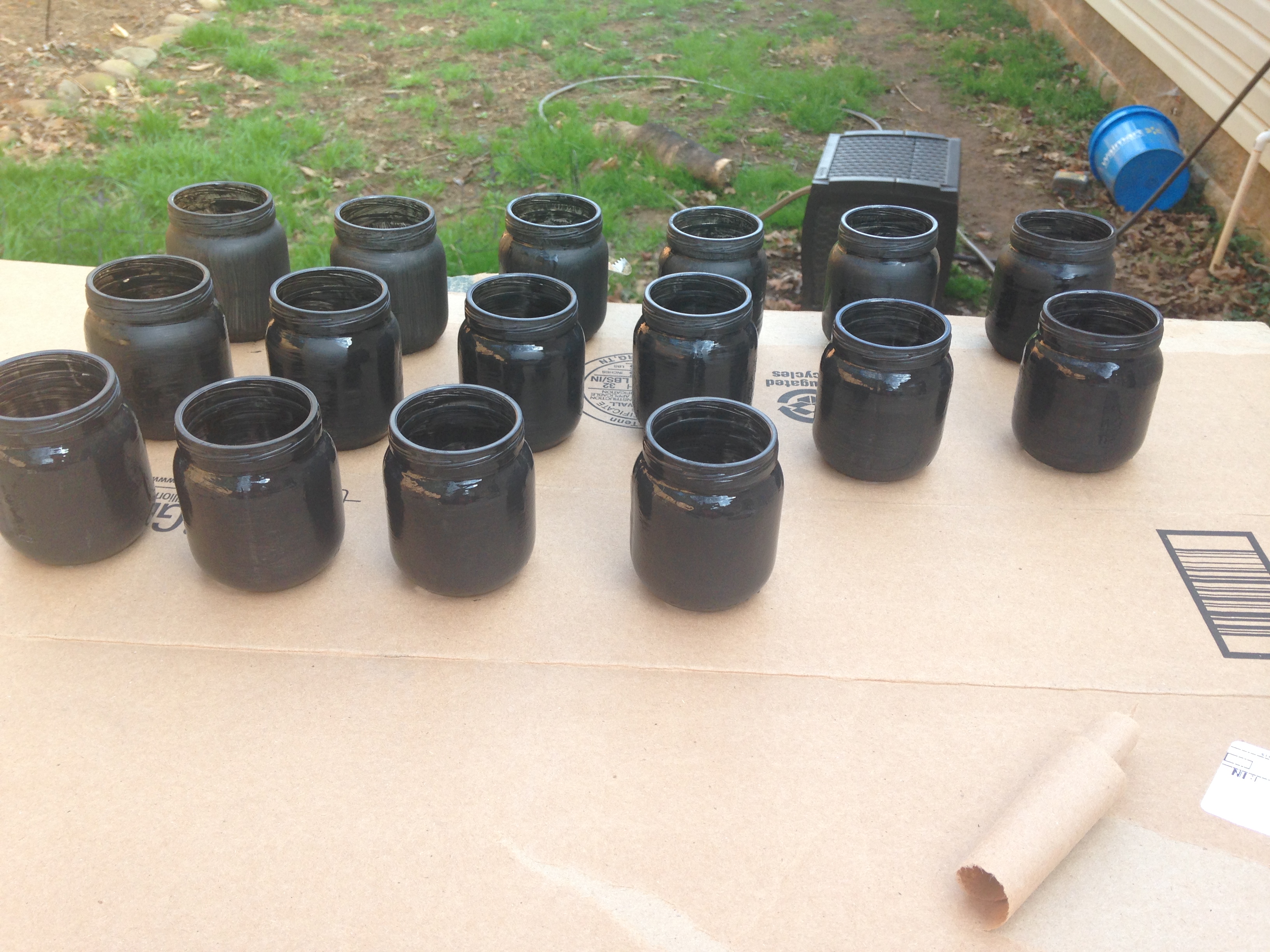 Step 1: Paint the glass jars with black chalkboard paint.