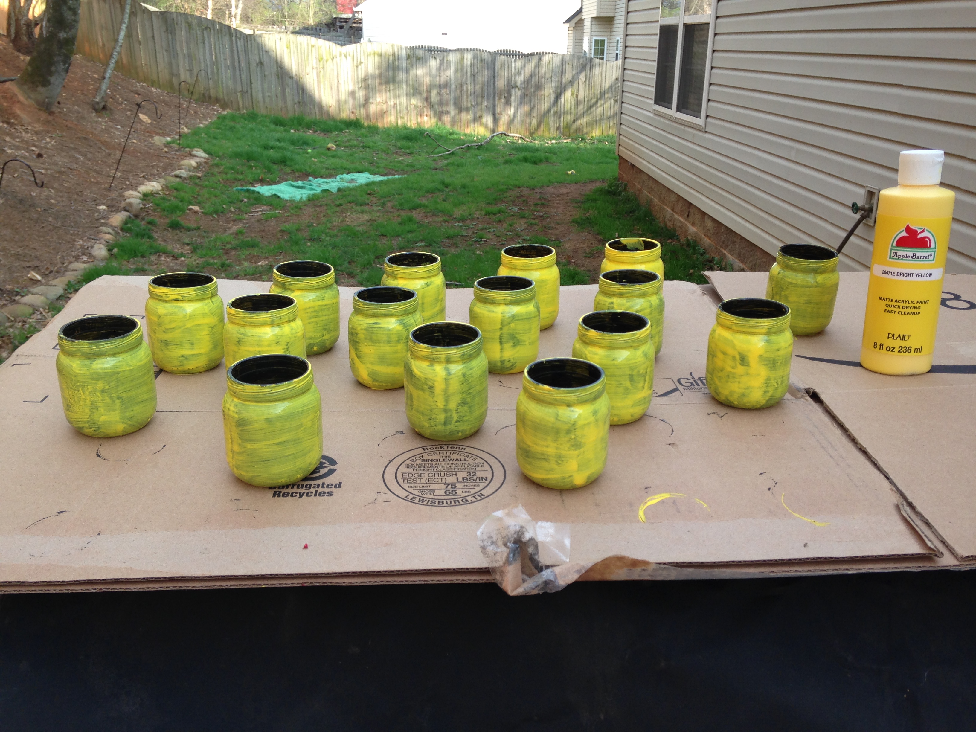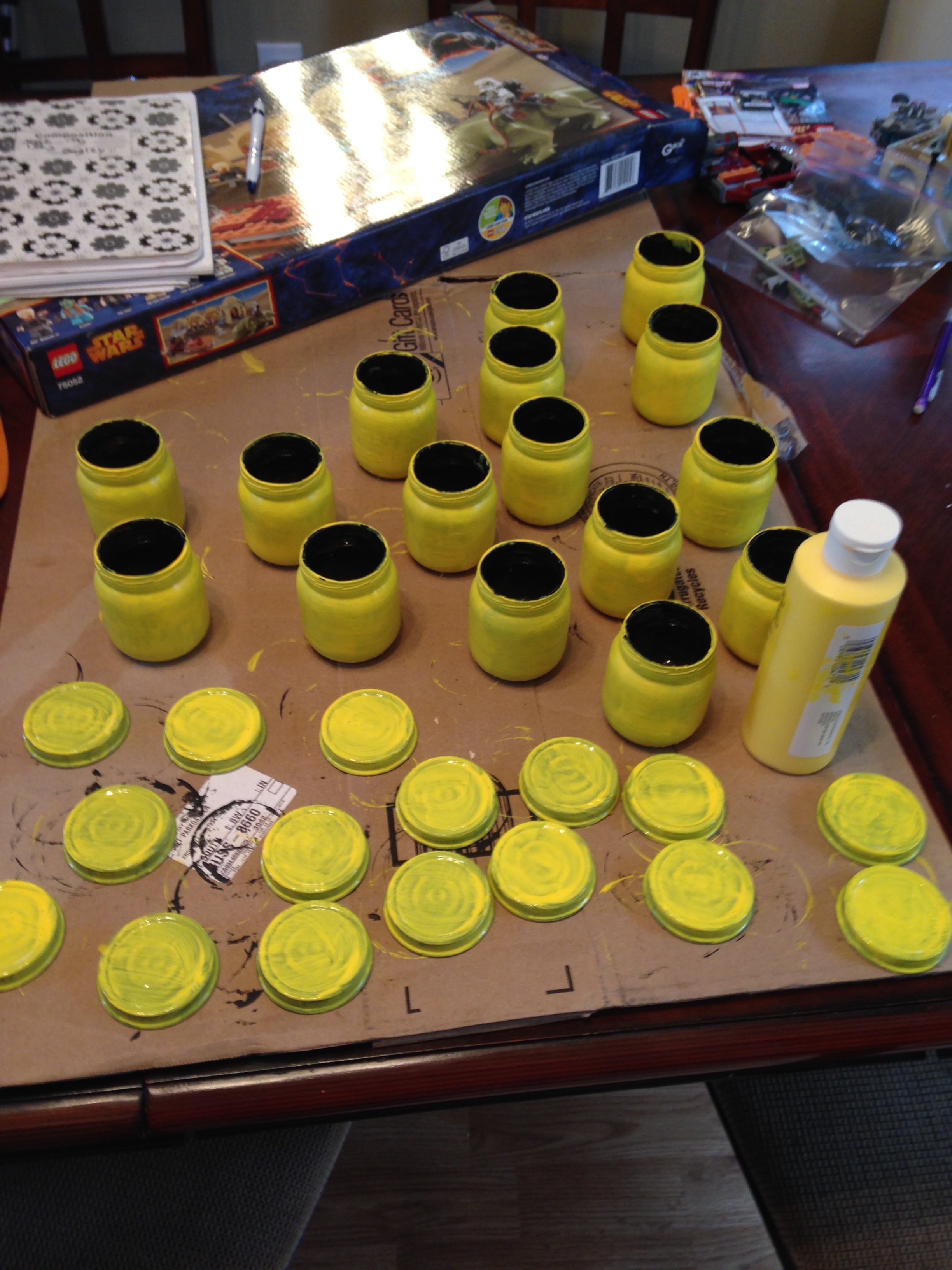 Step 4: Apply ANOTHER coat of yellow paint. Paint the lids yellow.** AGAIN, THIS DID NOT WORK. See next picture.