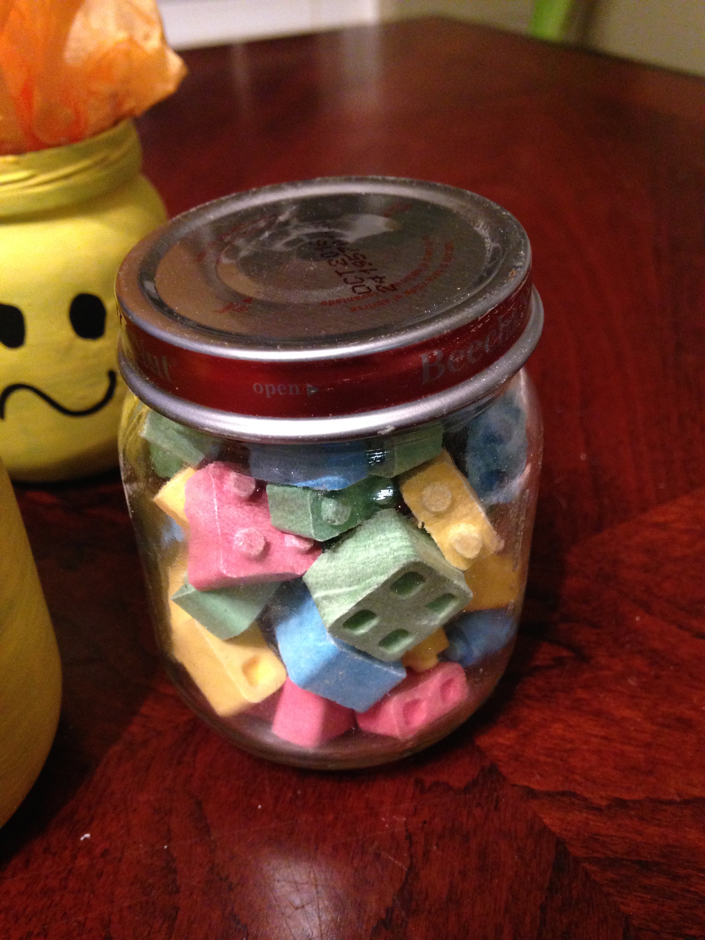 Step 6: Figure out how to store the Candy Blox in the jars without the lids.