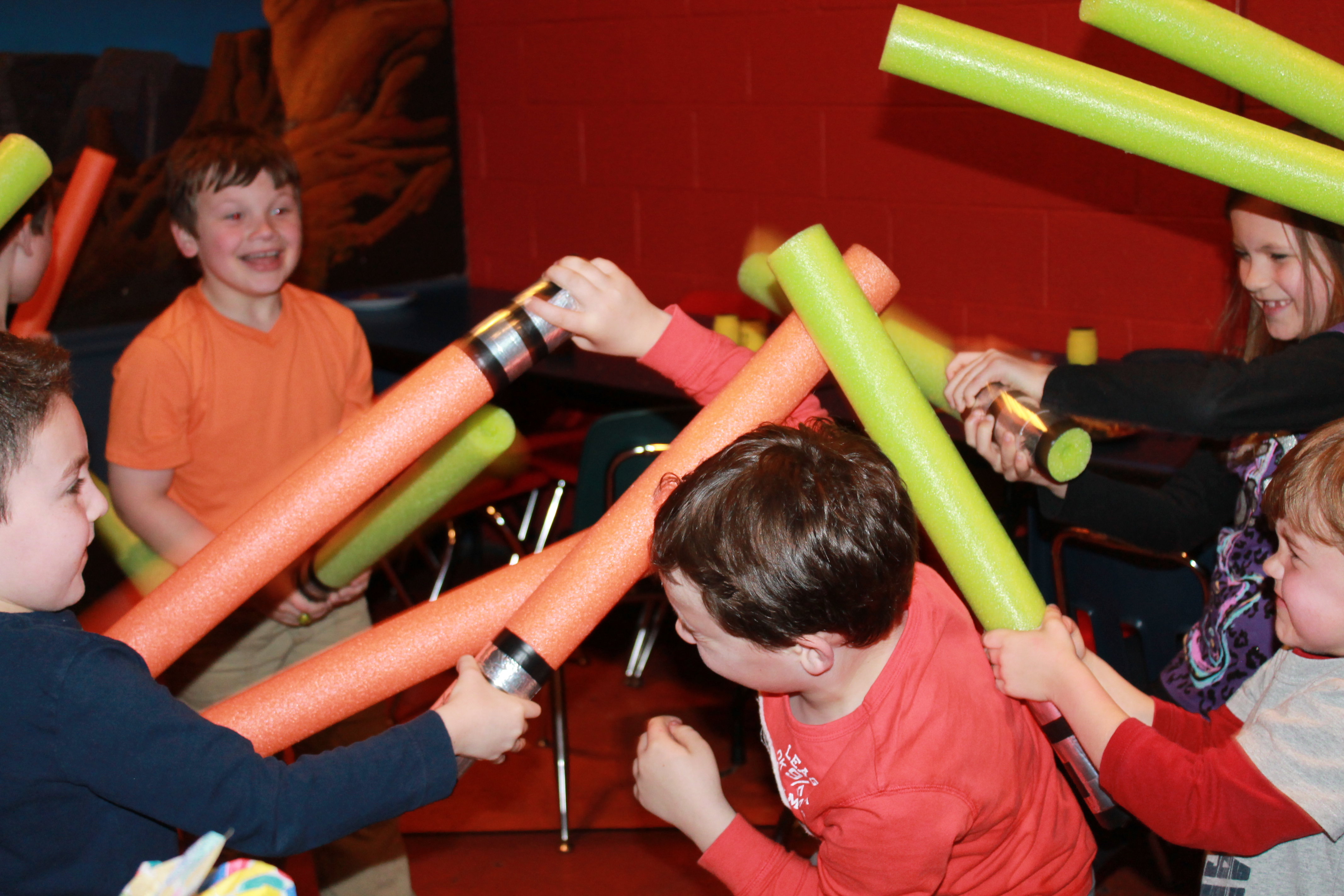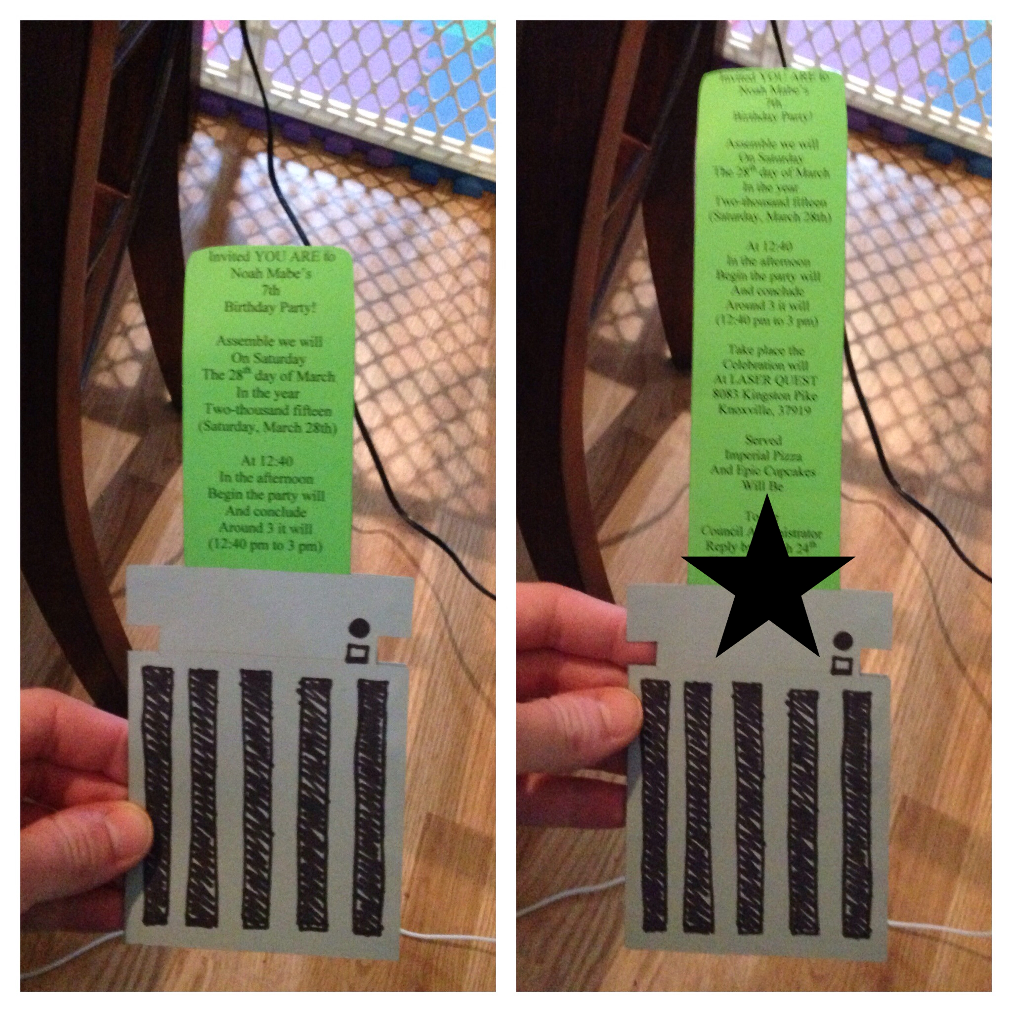 Noah wanted a lightsaber invitation that extended like a “real lightsaber.” We made and mailed these to our party guests.