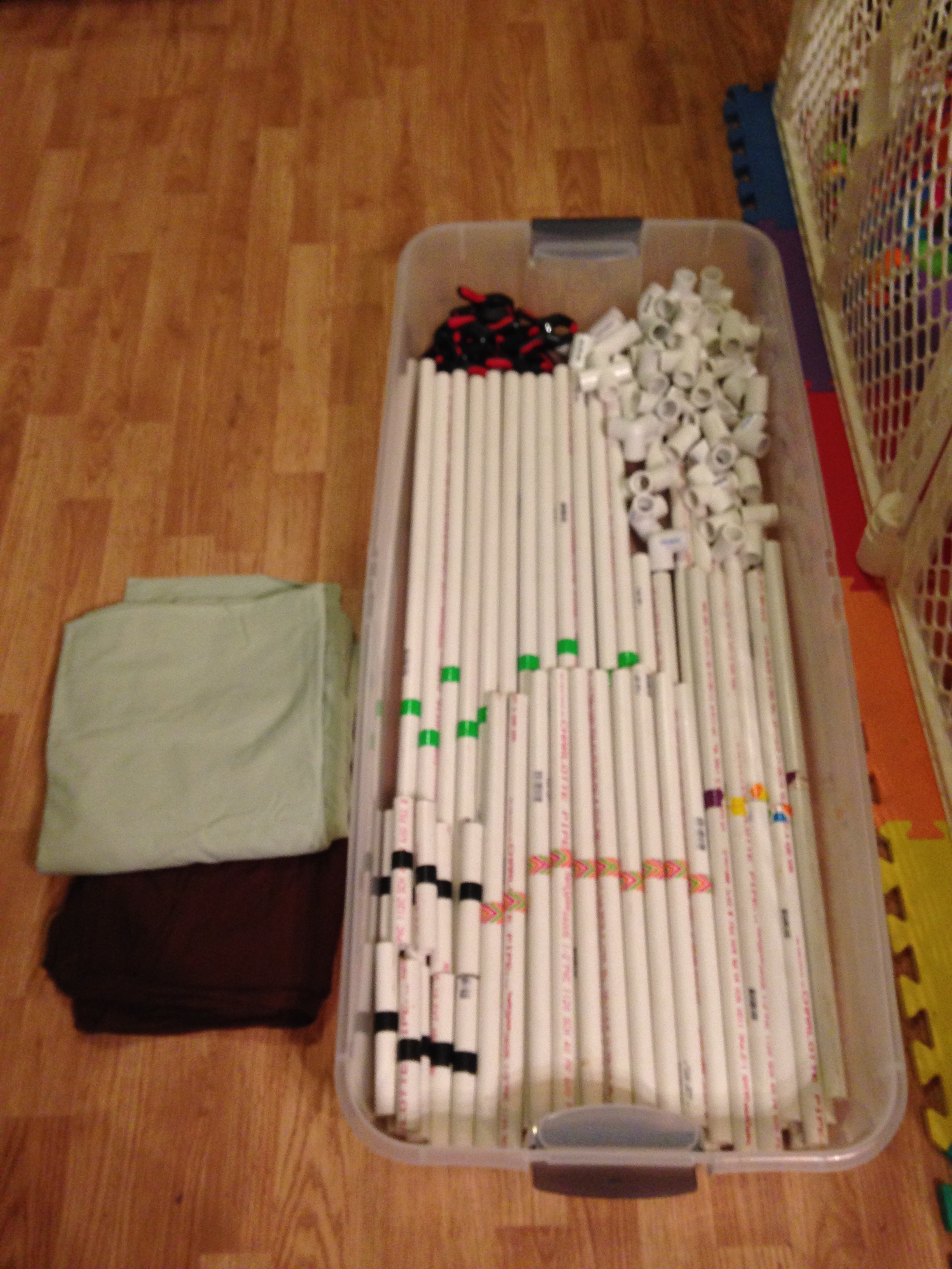 We gave Noah his last gift from us after the birthday party– a fort kit. He has been building forts daily with this kit ever since!