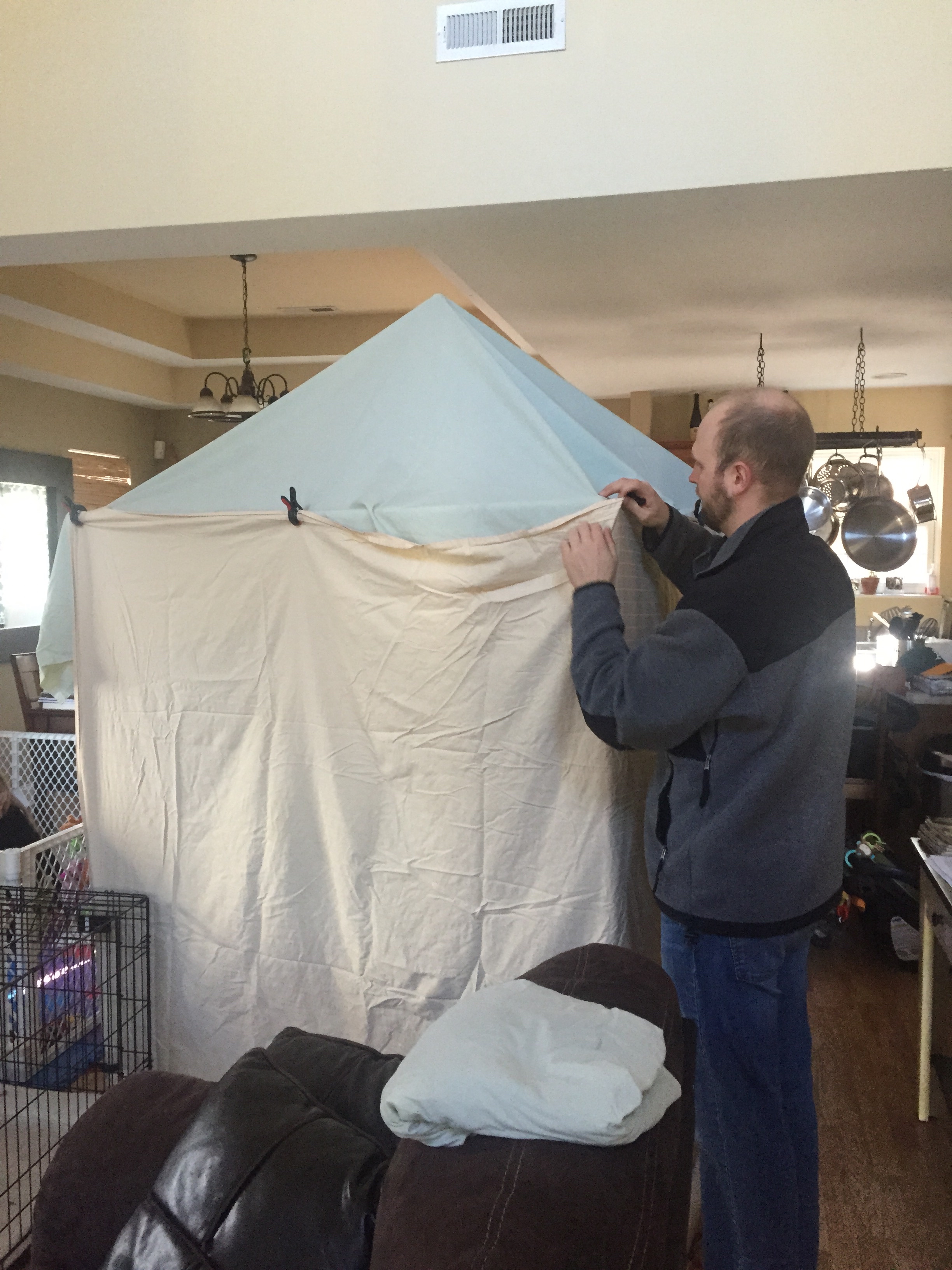 The first fort that Noah and his Daddy built almost touched the ceiling! Now, we try to keep the forts confined to the playroom upstairs! 🙂