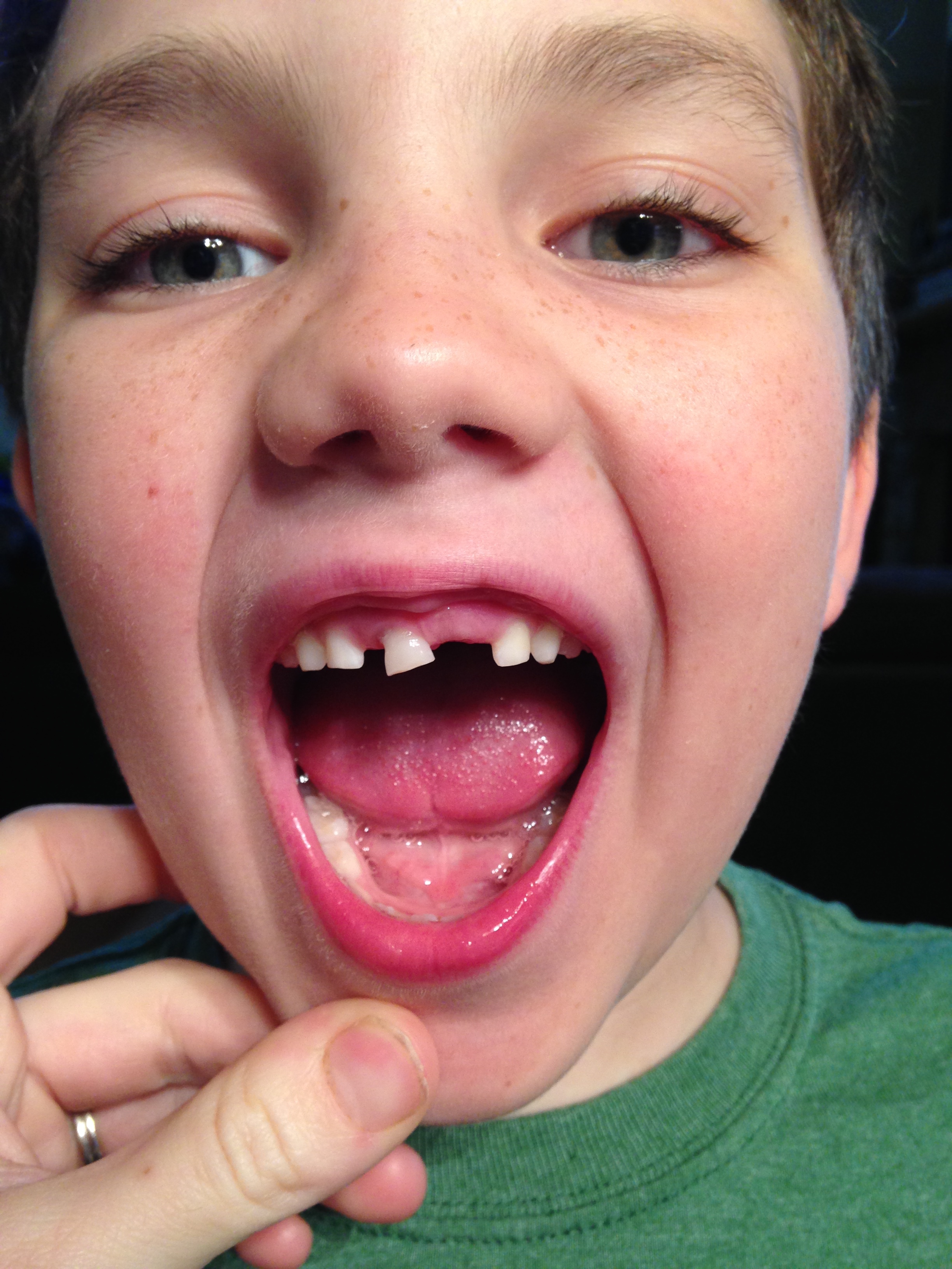 *How many teeth have you lost so far? He’s lost 5 teeth so far– 4 on the bottom and 1 on the top, all within the last year. He lost his first tooth in April 2014. His other “front tooth” on top is very very loose and currently hanging sideways in his mouth. I give it just a day or two.