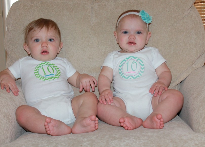 It’s hard to believe that 10 months has gone by like a blink of an eye. I know that I was behind in writing the 9 month post since we waited for updated stats from their 9 month check up. Not much has changed in the last couple weeks except that the twins are now on 3 bottles a day instead of 4. They are weaning themselves and it makes me so sad sometimes! The reality that my babies are becoming toddlers is hitting me HARD. I offer them a bottle of breastmilk (very little formula mixed in now that they are drinking less each day) at 7am, 2pm and 7:30pm. They LOVE “table food” and now have 4 meals per day– breakfast at 8:30am, lunch at 12pm, snack at 3:30pm, and dinner at 6pm. They will eat almost anything but Emry Jane is more finicky than Eli. If she does not like the taste of something, she will spit it out and feed it to our dog, Manning. He is getting quite a bit of table food from the babies these days! They have just mastered using their sippy cups. They prefer the Nuk ones but I am hoping to branch out to the Tommee Tippee and Avent ones that we already have. They started diluted apple juice after the doctor suggested it at their 9 month appointment and seem to really like it. It has helped them be more interested in their cups! They have also had water in their sippy cups while at the zoo. We went to Dollywood this past Sunday and they had cold breastmilk in their sippy cups throughout the day. I kept my small Medela cooler and an ice pack in the bottom of their stroller — No bottles and they did amazing! They enjoy bath time without their infant bath tubs but all the pulling up makes it much more challenging. Trying to keep two babies seated in the tub while also washing them in no easy task! Noah enjoys taking baths with them so we occasionally let him join and they all think that is even MORE fun!