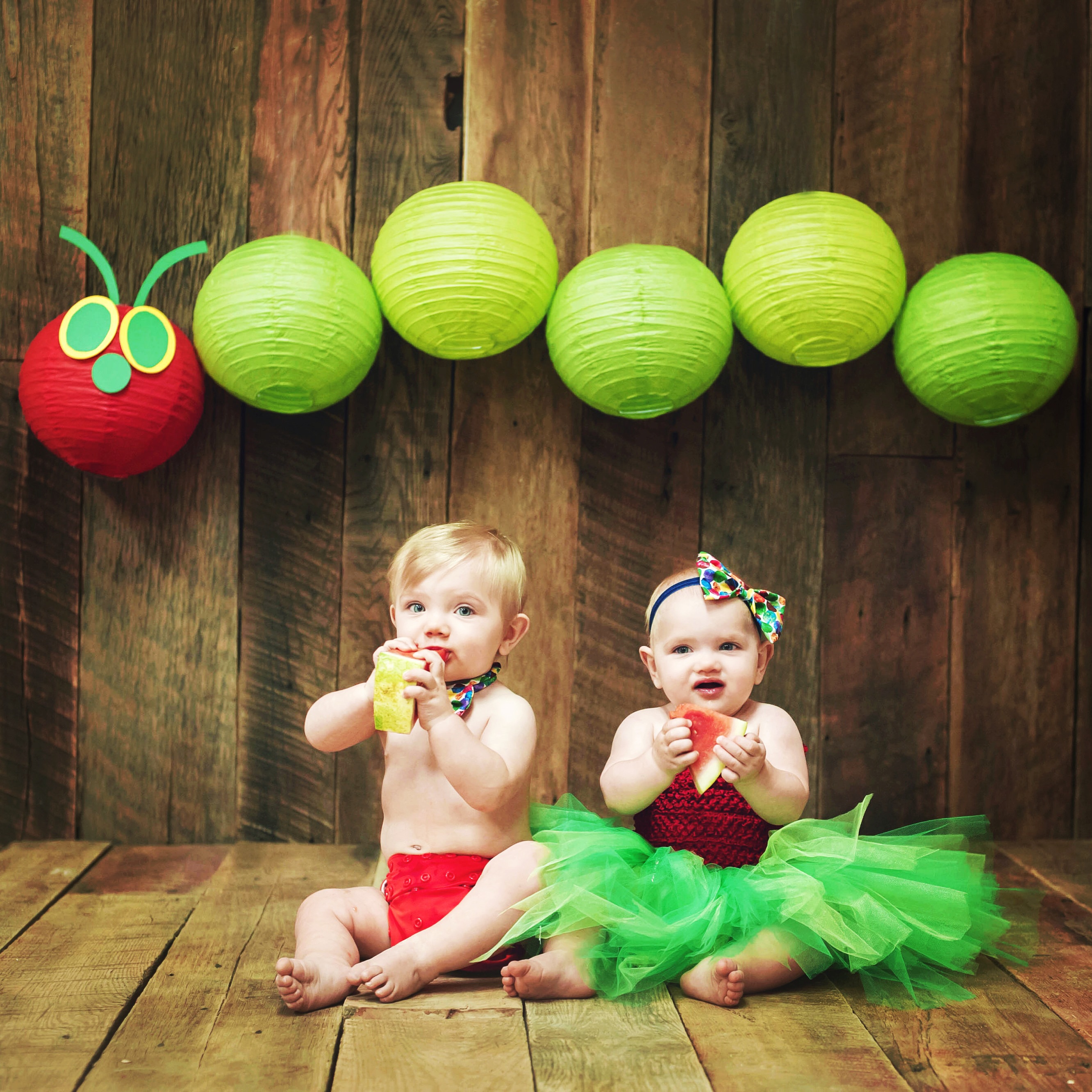 *EXTRA* DIY #3: Paper Lantern Caterpillar– super easy!! I went to Party City and bought the paper lanterns. They come in a pack of three, so I bought 2 packs of green lanterns. The greens were all “kiwi green” but you can tell that the two packs were slightly different shades so I alternated them for my caterpillar. I also bought a 3-pack of the red paper lanterns. I only needed one for the head, but I’ll use the other two at the birthday party. I used yellow and green card stock (and scotch tape!) for the face. I cut yellow ovals and green ovals for the eyes. I cut the green ovals smaller after and used the extra for the antennas then cut a green circle for the nose. SO easy! The paper lanterns come with string to hang them so I will use them again for birthday party decor!