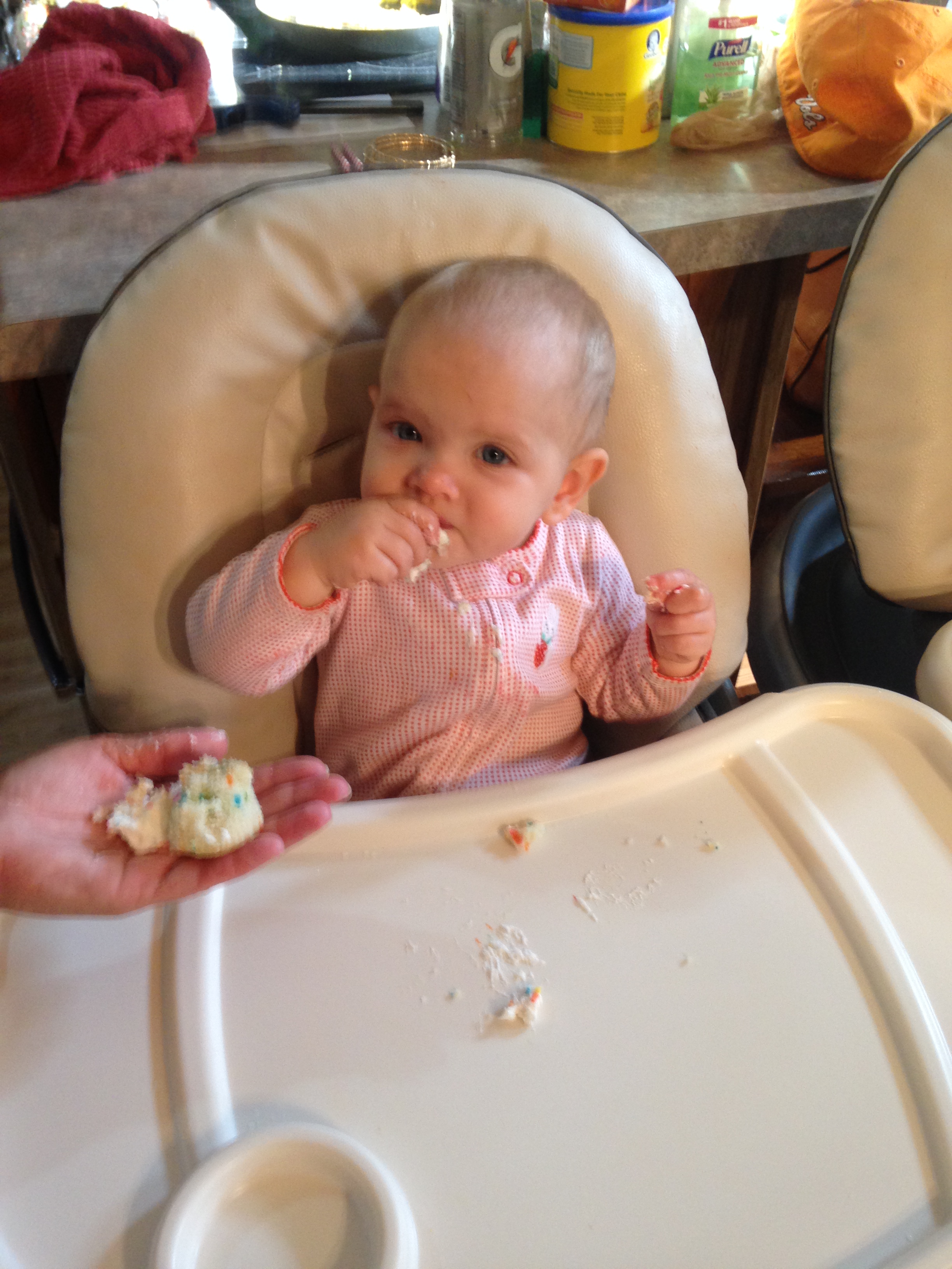 We did cupcakes AGAIN in the afternoon, after Daddy got home from work, so Daddy could be there and sing “Happy Birthday” with us. (We saved that part to do with him.) By the second time, the babies were PROS at that cupcake business 🙂