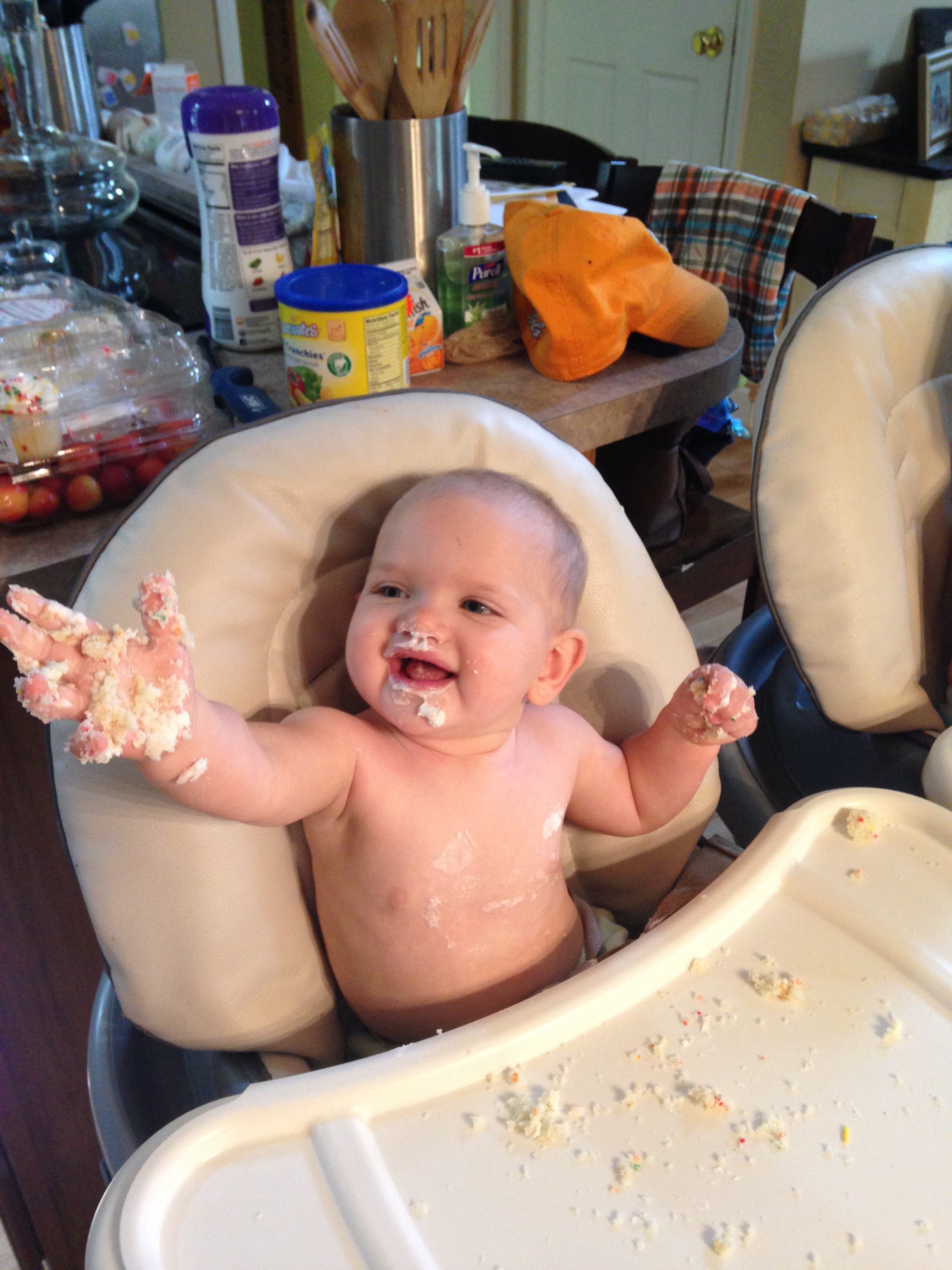 As you can see from the facial expressions below, the twins were not quite sure what to think about the cupcakes. Emry Jane pulled the icing off and ate some of the cake part. Eli devoured as much of his cupcake as he could 🙂