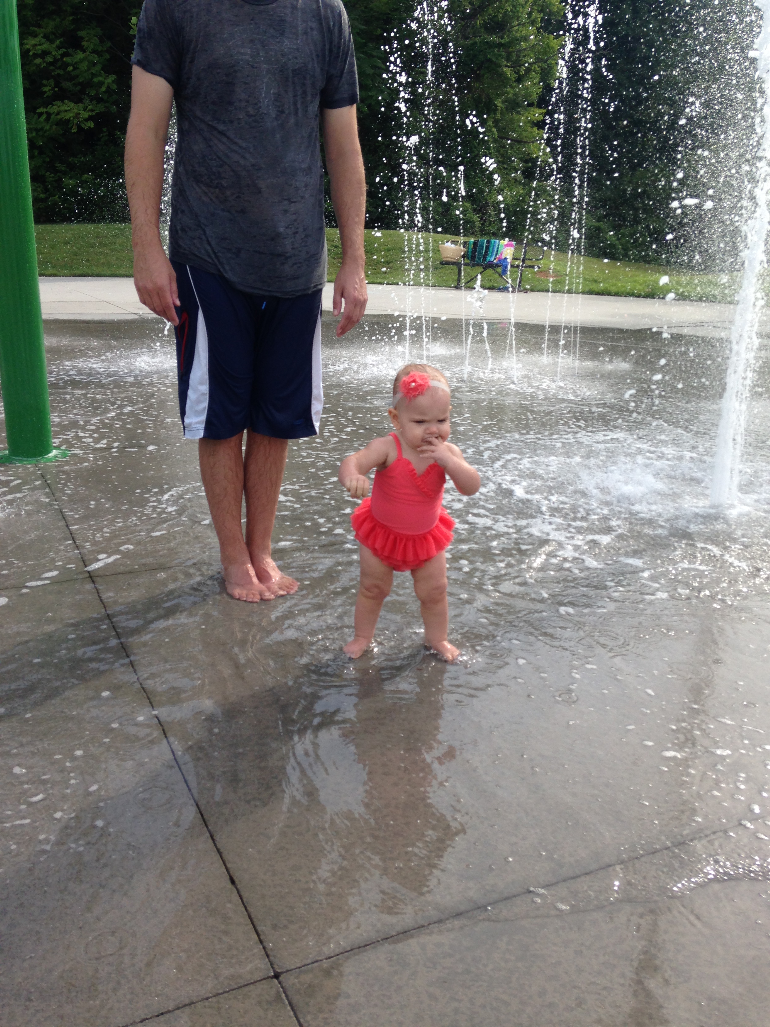 Emry Jane taking a few steps on her own at the splash pad. She is a pro at walking now, but at the time, this was a BIG deal.