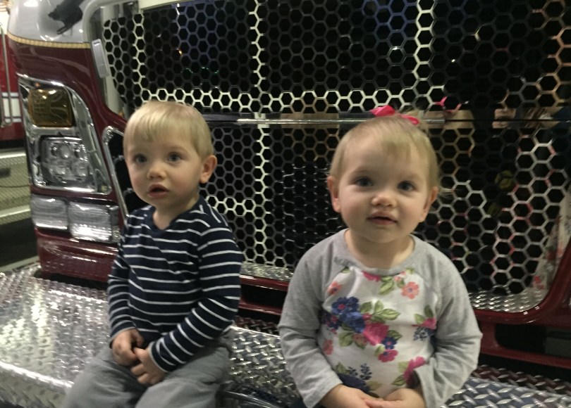 We have transitioned from bottles to a small amount of warm milk from a sippy cup first thing in the morning and before bed at night. The night that we got home from our “Tour de Southeast” I threw the bottles in the trash. Tommy had vacation from work for the next week and I told him, “We are in this together. No bottles.” The babies did great with the transition. They eat everything that we eat. Sometimes they are picky about new types of meat (we just recently tried pork loin,) but all fruits and vegetables are game. They are on a raspberries and mandarin orange kick. Good thing Cuties are in season! They still enjoy fruit/veggie pouches (our new favorites are the combo Simple Truth ones that Kroger sells for $1) Baby Goldfish and mini Club Crackers during snack. They both ask for “nack” when they are hungry and it’s absolutely adorable. They have also gotten really good at using utensils. We give them utensils with most meals. They get frustrated with forks if they are REALLY hungry and cannot get enough food to their mouths fast enough.