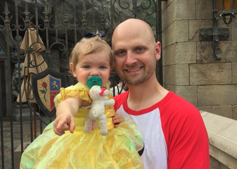 Our Be Our Guest reservation was only for the five of us (the reinforcements had decided not to go) so we went to that while the grandparents and the great-grandparents went to eat and to watch a bird show. When we originally booked our Be Our Guest dinner, I expected Belle to be at the dinner. I found out about a month before our trip that it was just the Beast at dinner, which was pretty disappointing. We decided to bring our own Belle 🙂 My cousin, Kristi, sent us a Belle dress that her daughter had worn to Disney when she was close to Emry Jane’s age. I think Emry Jane might be the cutest Belle EVER.